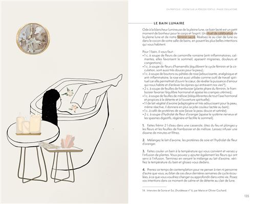 L’ouvrage de Marion Pezard s’adresse à toutes celles qui souhaitent comprendre ce qui se passe dans leur corps, de la puberté à la ménopause, mais surtout à chaque phase du cycle menstruel. Chaque étape est détaillée afin de mieux percevoir les besoins du corps et d’y répondre de manière adaptée. Grâce à des conseils pratiques issus de la naturopathie, l’auteure propose des outils concrets pour soutenir votre vitalité et votre équilibre. Ces outils incluent l’alimentation, l’exercice physique, la relaxation, l’utilisation de plantes et d’huiles essentielles ainsi que l’hydrologie.